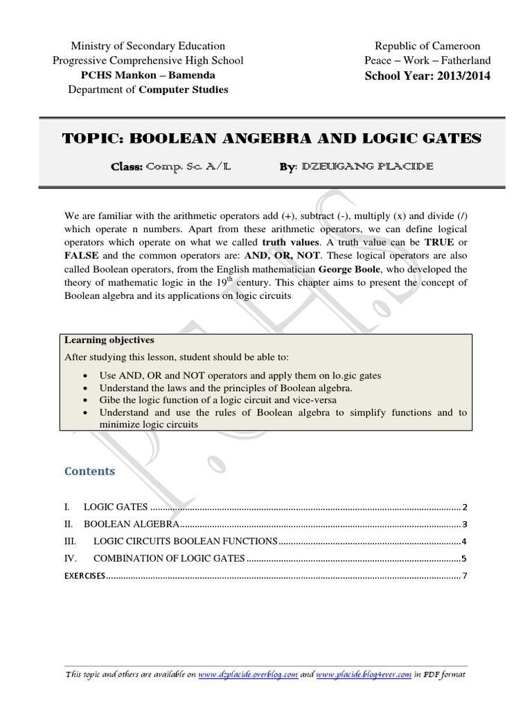 Logic Gate And Boolean Algebra Updated Placide S Personal Blog